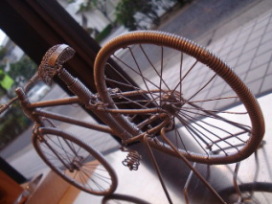 ひたすらハリガネを巻き続けたこの自転車。 斜め後ろから見るととてもかっくいいんです。 |
