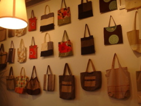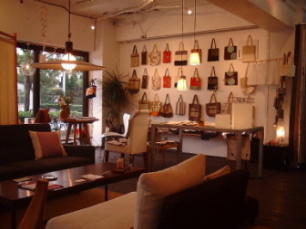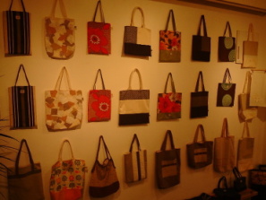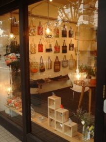 | 外からみたらこんなかんじ。壁一面のバッグが外からも目立ったようです。 |