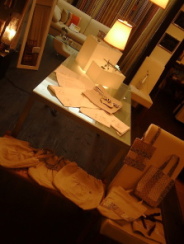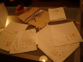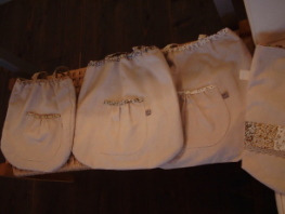 | 今回はバッグ、ミニミニバッグがメインとなりましたが、 他にタブリエ、巾着、カフェカーテン、なども作りました。 |