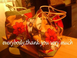 私が使う柄としては珍しく、鮮やかな花柄なども 個展用として使ってみました。 Rinの雑貨をよく知って下さってる方からは「意外だね 」という声も頂きました。 個人的には「真っ赤な花柄のバッグ」が気に入っています。 |