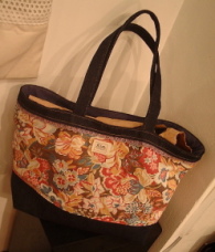 ページュ生地と花プリントでペタンコバッグなのに 「ぽてっ」としたデザインのバッグ。 私自身も気に入っていて普段、よく使っています。 |