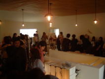 ●●● Entrance ●●● ←の写真にも載せていますが このイベント限定でLoFTの入り口を変えてみました。 今までずっと探していた白い波板を、とあるホームセンターで見つけ即購入。 前日の夜中に1人で貼り付けている姿はきっと怪しく異様だったと思います。(笑 そのお陰?かLoFTをよく知る方からは「いいね〜」「あっ、何か変ってる??」 のお言葉。(^^ワタシ自身も大満足でした。 施工時間、4時間(TTでも、して良かったです。 椅子の上、天井からのライトは+Wireism+のライトを、オリーブやその他のグリーンは我が家からの持ち込みです。 ↑ この写真はお別れ前にLoFTの入り口を 写真におさめてくれている「abstyle@中山さん」(^^ ふっふっふっ・・と密かにこの姿をワタシも一枚パチリ。 ●●●●● そして11時オープン予定でしたが小雨が降り始めたので 5分早めのオープンとなりました。 なんとオープン前にはギャラリー入り口まで30m程の行列がっ!! どんどんと人の列がLoFTに吸い込まれて行きました。 |