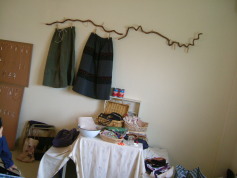 姉妹での出展のお2人。洋服から布雑貨まで幅広い品揃え。 おもいっきり準備中の写真ですみませんf(^^; この後はボディも使ったディスプレイなどで 工夫がたっぷりのお2人のブースでした。 |