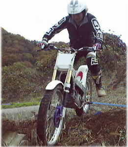 トライアル暦:2シーズンのみ、オブザーバー暦のほうが長くなったか? 所属クラブ:数少ないミックトライアルクラブ会員 出身地:美保関町 トライアル出身地:掛合純正種。ビギナー優勝が目標だが、次々と現れる新人に阻まれつづけ、夢果たせぬままNBラインにトライするが腰を痛めた。 |