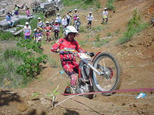 | 名前は、藤山賢二 21歳からいままでずーっと、けんちゃん。としか呼ばれてません。私の名字を知らない人が今でもいっぱいいます。 年齢は、39歳でございます。トライアルをしてるときは気持ち29歳でございます。 若輩物でございますが現役のころ出来なかった後輩を育てること。現役時代の間違った乗り方を修正すること。を目的にトライアルしとります。以上でございました。 |