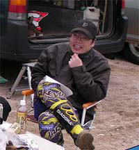 | 名前:津森伸吾 呼び名:津もチャン、ロケット津森 年齢:若くはない 特徴:無類のメカ好き、なんでも自分で整備している。人のバイクまで整備している。ミックの草トラでマシントラブルがあると必ず彼の姿が有り、そのバイクはまた走れる様になる。 |
