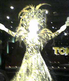右の東京ドームの衣装は超有名ですね(笑)。顔が光っちゃってるけど、これは人形。もう一体、赤い衣装もあったのよね。